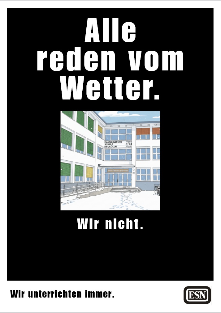 Die Evangelische Schule Neukölln (ESN) ist eine öffentliche, staatlich anerkannte Schule mit den Klassen 1-13. Der Schulträger ist die Schulstiftung der Evangelischen Kirche Berlin-Brandenburg-schlesische Oberlausitz. Die ESN hat teil an dem pädagogischen Handeln der Kirche, das sich an der christlichen Überlieferung in Bibel und Geschichte orientiert. Sie sucht das ökumenische und interreligiöse Gespräch und ist daher offen für die Aufnahme interessierter Angehöriger anderer Konfessionen und Religionen. Das christliche Profil der Schule verdeutlicht sich vor allem in der verbindlichen Teilnahme am Religionsunterricht, an Andachten und Gottesdiensten und in der Möglichkeit, ethische Probleme vor dem Hintergrund der christlichen Tradition in jedem Fach aufzunehmen.