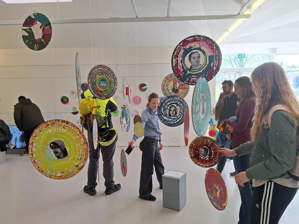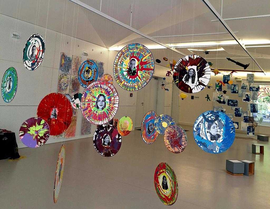 Vom 17.2. bis zum 20.2.2026 haben 14 Schüler*innen des 8. und 10. Jahrgangs zusammen vier Tage lang in einer Künstlerischen Werkstatt sogenannte Spin Paintings erstellt.