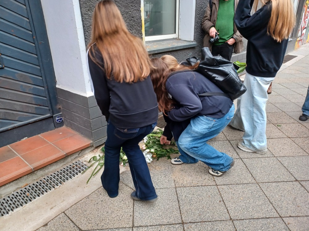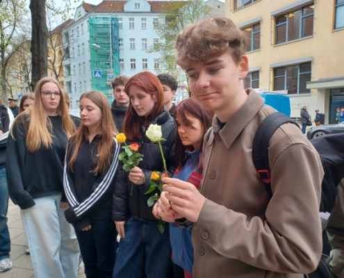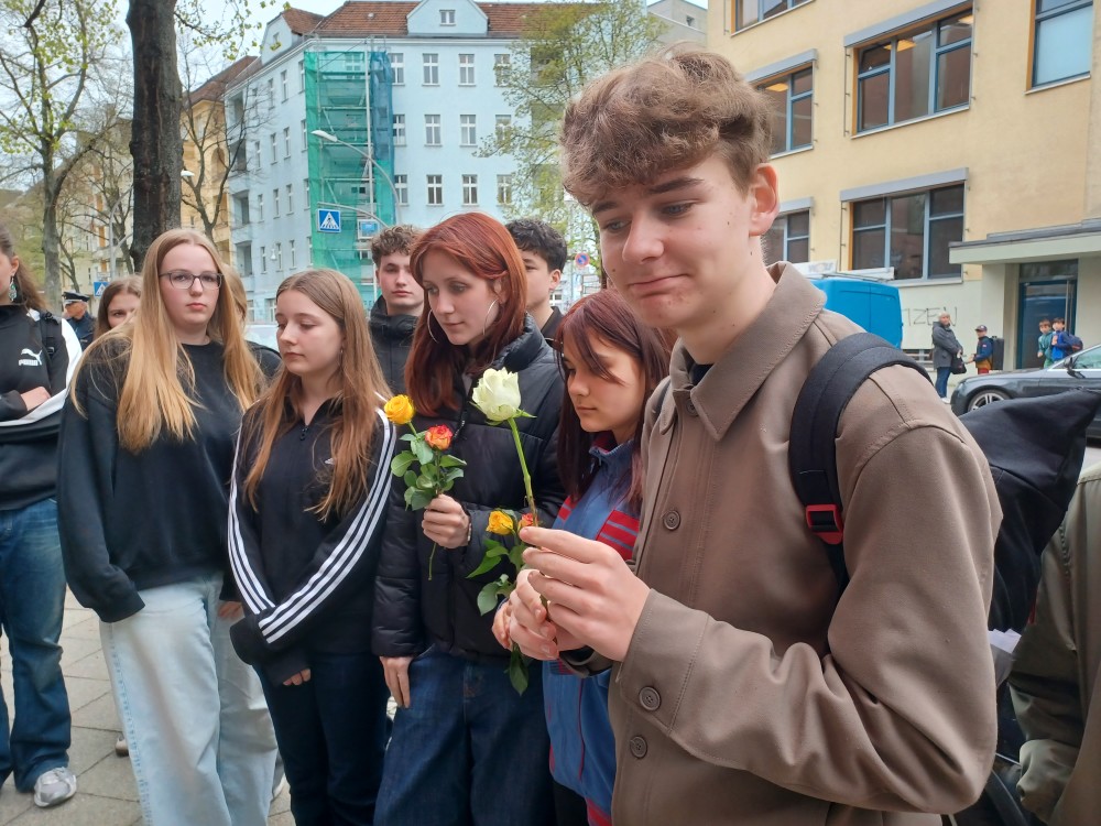 Schüler:innen der 9a haben die Feier begleitet und mitgestaltet. Zuvor hatten die Initiatoren die Klasse zum Gespräch besucht. Nähere Infos zur Familie Schnapp auch bei Sebastian Prüfer.