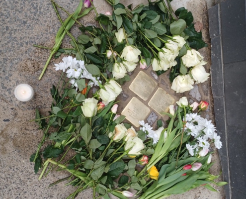 Am Dienstag, den 14.04. fand vor der Reuterstraße 11 (direkt gegenüber unserem Hort) eine bewegende Stolpersteinverlegung durch Museum und Bezirksamt Neukölln statt. Gedacht wird damit an den letzten freiwilligen Wohnsitz der deutsch-jüdischen Familie Schnapp, die durch die nationalsozialististische Herrschaft 1933-1945 diffamiert, entrechtet und umgebracht wurde.