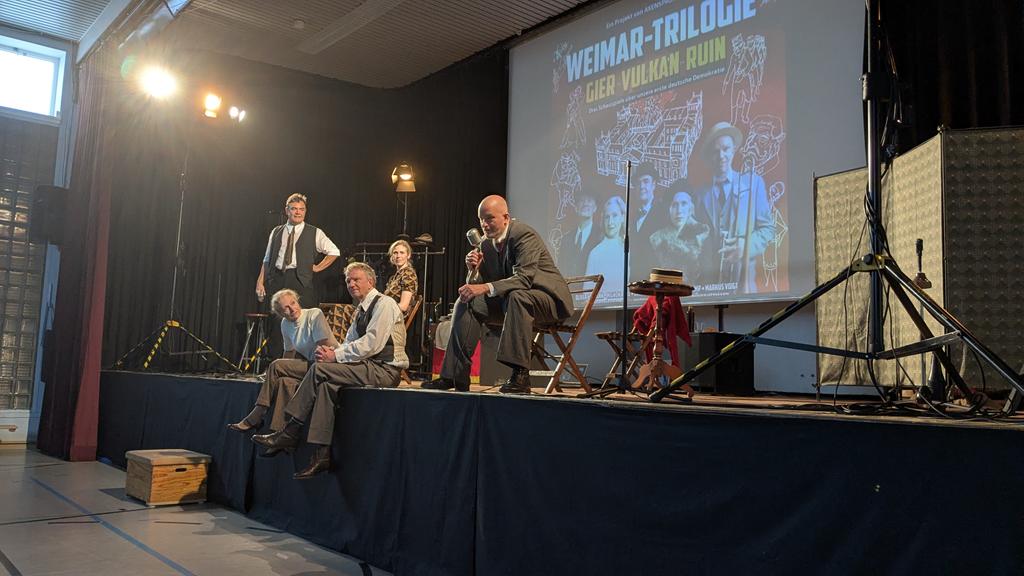 Das Stück „Ruin“ bildet den dritten und abschließenden Teil der Weimar-Trilogie des Axensprung-Theaters. Im Mittelpunkt steht die Zeit am Ende der Weimarer Republik (1929–1933) – eine Phase, geprägt von wirtschaftlicher Not, politischer Instabilität und dem Aufstieg extremistischer Kräfte.