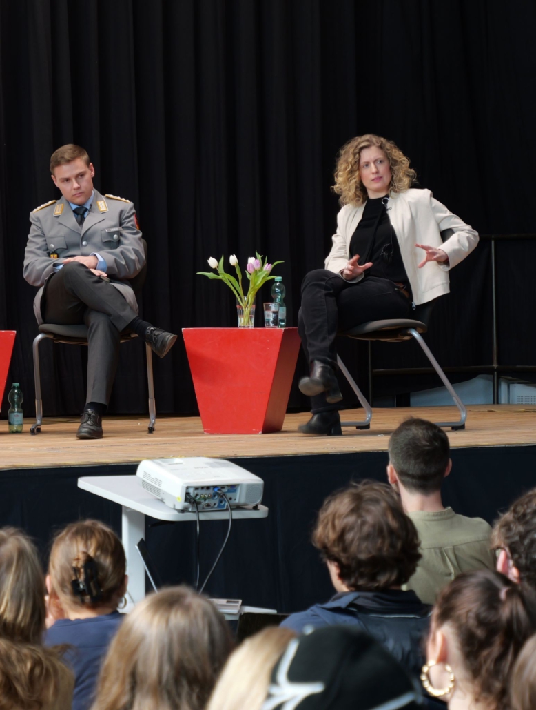 Während der Podiumsdiskussion hatten unsere Gäste die Gelegenheit, sich vorzustellen, ihre jeweiligen Positionen zur Wehrpflicht darzulegen und zu verteidigen sowie auf Fragen aus der Schülerschaft einzugehen. Am Folgetag wurde erneut eine Umfrage durchgeführt, um mögliche Meinungsänderungen festzustellen. Dabei zeigte sich, dass die Haltung der meisten unverändert geblieben war und das, obwohl insbesondere Mike Siebert von vielen als überzeugend wahrgenommen wurde.